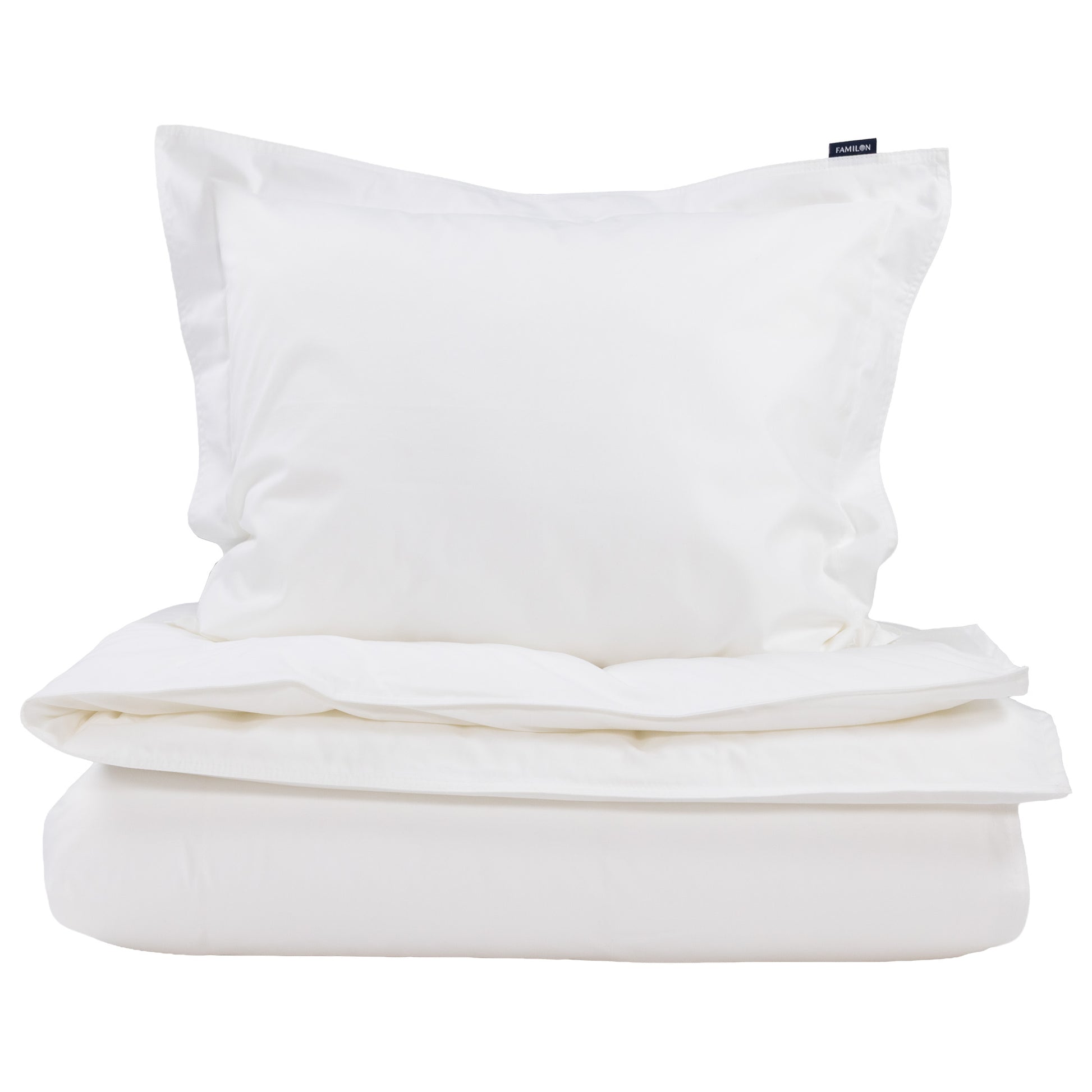 Made from high-quality percale cotton, this duvet cover set feels wonderfully comfortable against the skin, offering exceptional durability and the crisp, luxorious feel of hotel bedding. The cotton percale fabric is densely woven from fine, thin threads, making it smooth, soft and subtly shimmering. The pillowcase features 3 cm wings, and both the duvet cover and pillowcase are elegantly finished with white Familon embroidery.